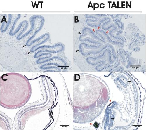 TALEN-mediated apc mutation in Xenopus tropicalis phenocopies familial adenomatous polyposis.,