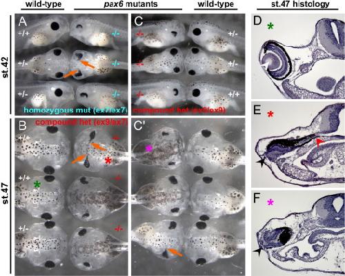 Xenopus pax6 mutants affect eye development and other organ systems, and have phenotypic similarities to human aniridia patients.,