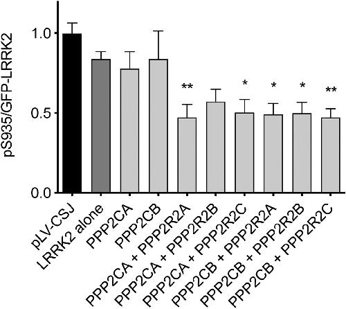 Protein phosphatase 2A holoenzymes regulate leucine-rich repeat kinase 2 phosphorylation and accumulation., Drouyer M,Bolliger MF,Lobbestael E,Van den Haute C,Emanuele M,Lefebvre R,Sibran W,De Wit T,Leghay C,Mutez E,Dzamko N,Halliday GM,Murayama S,Martoriati A,Cailliau K,Bodart JF,Chartier-Harlin MC,Baekelandt V,Nichols RJ,Taymans JM, Neurobiol Dis. September 1, 2021; 157:1095-953X.