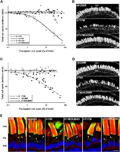 Synchronized Photoactivation of T4K Rhodopsin Causes a Chromophore-Dependent Retinal Degeneration That Is Moderated by Interaction with Phototransduction Cascade Components.,