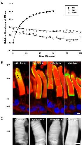 Photoactivation-induced instability of rhodopsin mutants T4K and T17M in rod outer segments underlies retinal degeneration in X. laevis transgenic models of retinitis pigmentosa.,