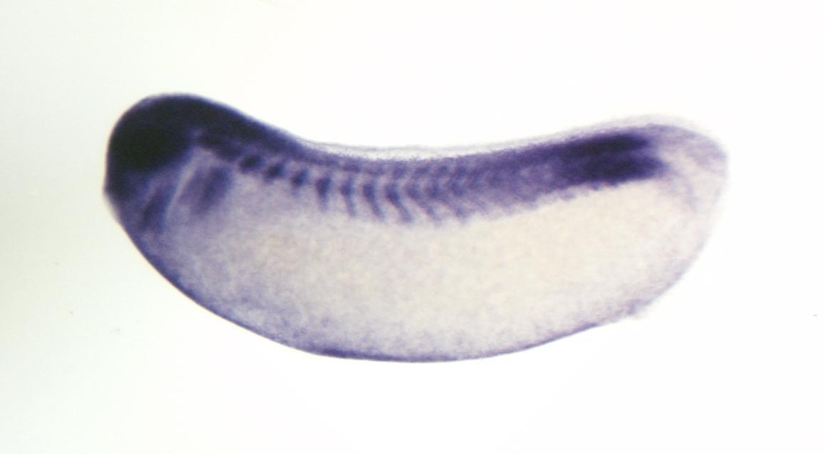 Larger Image cebpg (CCAAT/enhancer binding protein (C/EBP), gamma) gene expression in Xenopus laevis embryo, assayed via in situ hybridization, NF stage 28, lateral view, anterior left, dorsal up. Copyright © Patient Lab Image created by: Aldo Ciau-Uitz