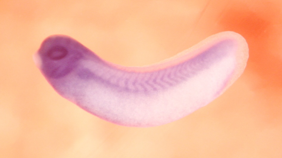 Larger Image ece1 (endothelin converting enzyme 1) gene expression in Xenopus laevis embryo, assayed via in situ hybridization, NF stage 30, lateral view, anterior left, dorsal up. Copyright © Patient Lab Image created by: Aldo Ciau-Uitz