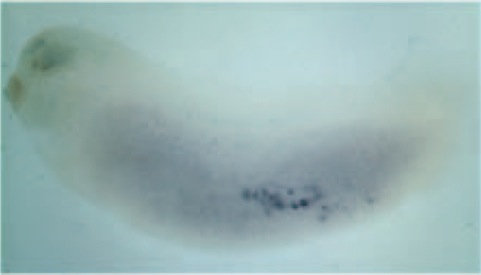 Larger Image pcsk6 (proprotein convertase subtilisin/kexin type 6) gene expression in Xenopus laevis embryo, assayed via in situ hybridization, NF stage 30, lateral view, anterior left, dorsal up. Image published in: Birsoy B et al. (2005) Copyright © 2005. Image reproduced with permission of the Publisher and the copyright holder. This is an Open Access article distributed under the terms of the Creative Commons Attribution License.