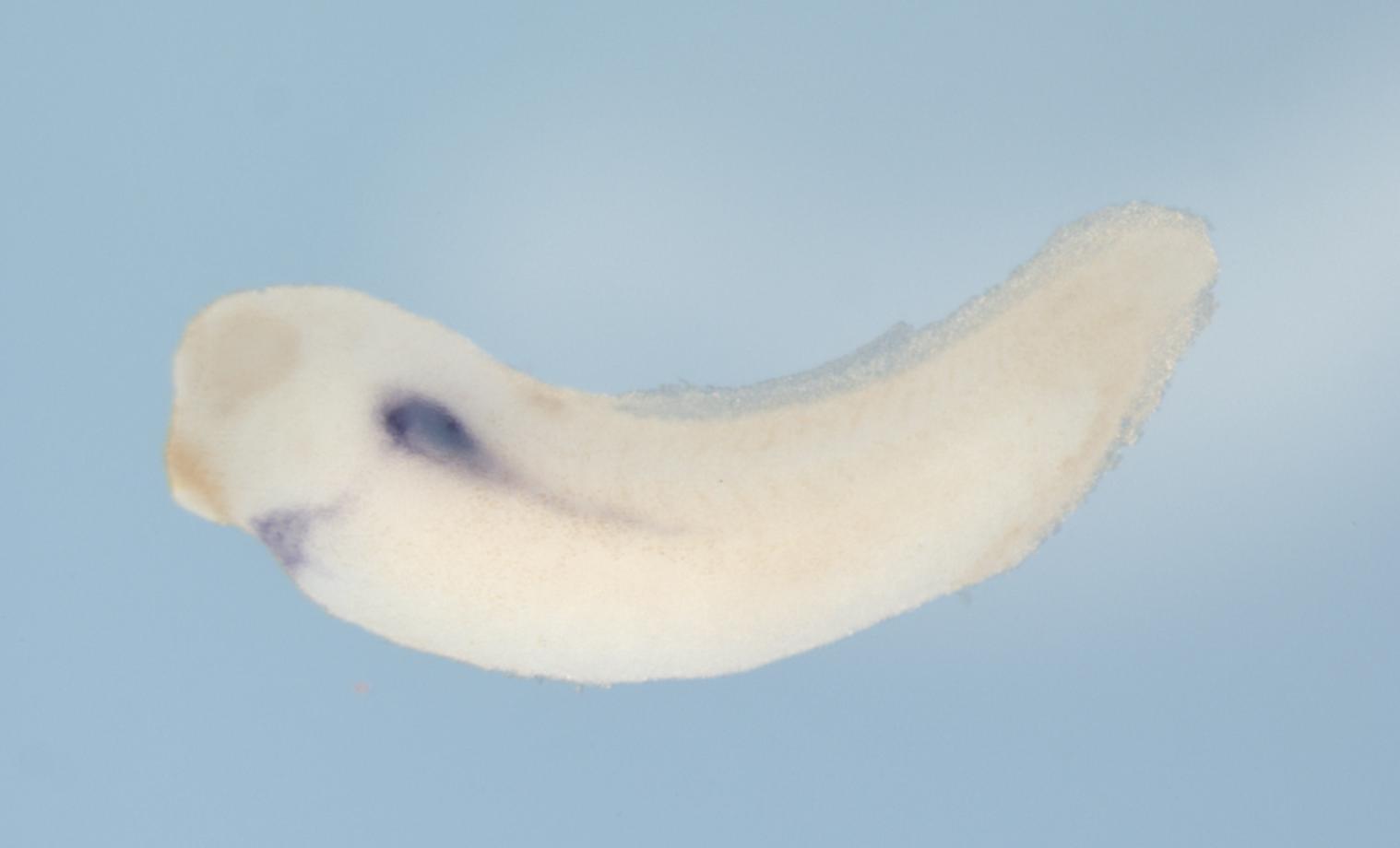 Larger Image wt1 (WT1 transcription factor) gene expression in Xenopus laevis embryo, assayed via in situ hybridization, NF stage 33 & 34, lateral view, anterior left, dorsal up. Copyright © Soeren S Lienkamp Image created by: Soeren S Lienkamp