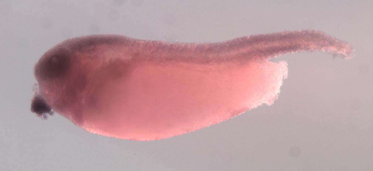 kif21b (kinesin family member 21B L homeolog) gene expression in X. laevis embryo, assayed via in situ hybridization, NF stage 35 & 36, lateral view, anterior left, dorsal up.