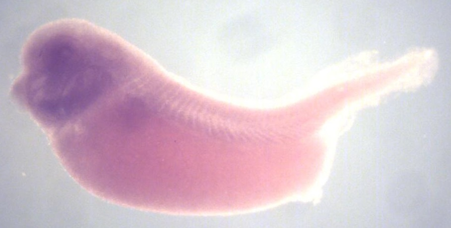 Larger Image clip4 (CAP-Gly domain containing linker protein family member 4) gene expression in X. laevis embryo, assayed via in situ hybridization, NF stage 35 & 36, lateral view, anterior left, dorsal up. Copyright © Perron Lab