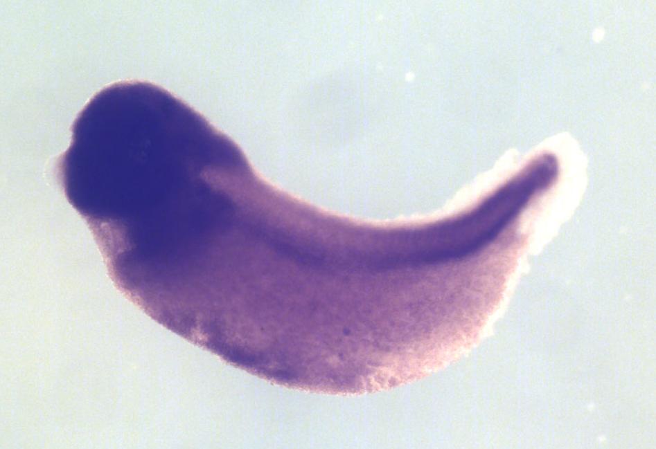 Larger Image pms2 (PMS1 homolog 2, mismatch repair system component) gene expression in X. laevis embryo, assayed via in situ hybridization, NF stage 35 & 36, lateral view, anterior left, dorsal up. Copyright © Perron Lab
