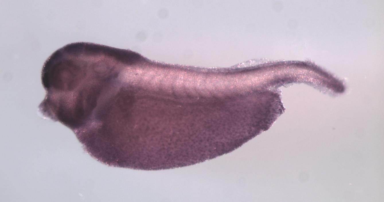 Larger Image fbxl5 (F-box and leucine-rich repeat protein 5) gene expression in X. laevis embryo, assayed via in situ hybridization, NF stage 35 & 36, lateral view, anterior left, dorsal up. Copyright © Perron Lab