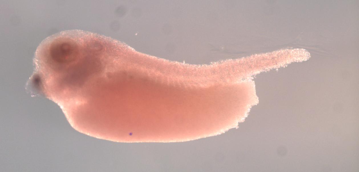 Larger Image tesk1 (testis-specific kinase 1) gene expression in X. laevis embryo, assayed via in situ hybridization, NF stage 35 & 36, lateral view, anterior left, dorsal up. Copyright © Perron Lab