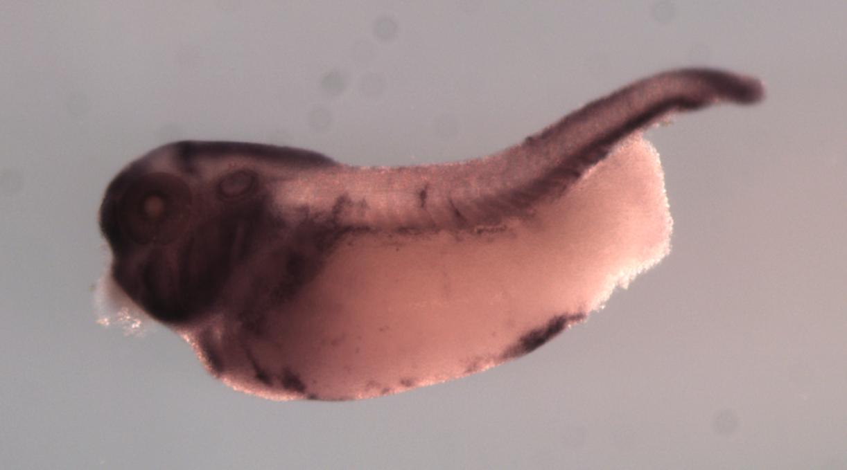 Larger Image eef1g (eukaryotic translation elongation factor 1 gamma) gene expression in X. laevis embryo, assayed via in situ hybridization, NF stage 35 & 36, lateral view, anterior left, dorsal up. Copyright © Perron Lab
