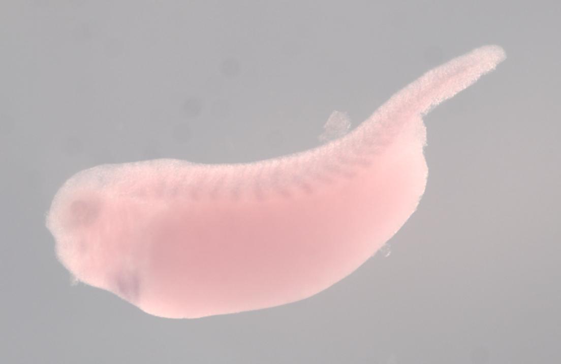 Larger Image fhod3 (formin-like 3) gene expression in X. laevis embryo, assayed via in situ hybridization, NF stage 35 & 36, lateral view, anterior left, dorsal up. Copyright © Perron Lab