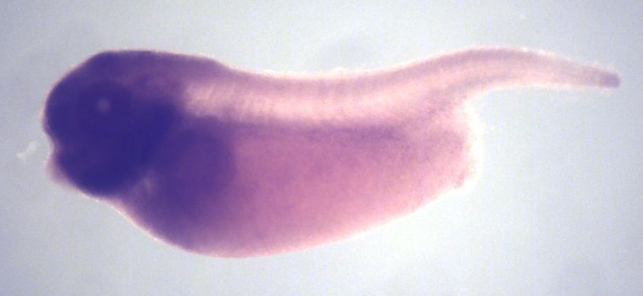 dnttip1 (deoxynucleotidyltransferase, terminal, interacting protein 1) gene expression in X. laevis embryo, assayed via in situ hybridization, NF stage 35 & 36, lateral view, anterior left, dorsal up.