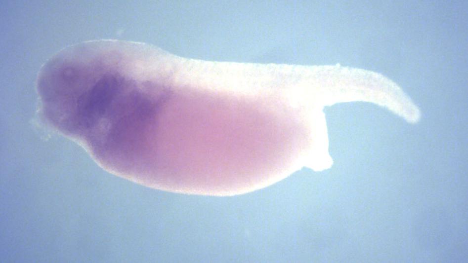 Larger Image n4bp1 (nedd4 binding protein 1) gene expression in X. laevis embryo, assayed via in situ hybridization, NF stage 35 & 36, lateral view, anterior left, dorsal up. Copyright © Perron Lab