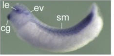 Larger Image cdkn1a (cyclin-dependent kinase inhibitor 1A) gene expression in Xenopus laevis embryo, assayed via in situ hybridization, NF stage 26-32, lateral view, anterior left, dorsal up. This image is extracted from figure published in: Zhang Z et al. (2017) Copyright © 2017. Image reproduced with permission of the Publisher and the copyright holder. This is an Open Access article distributed under the terms of the Creative Commons Attribution License.