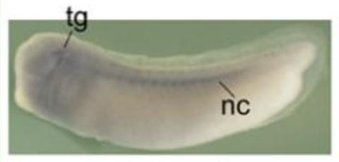 Larger Image hic1 (hypermethylated in cancer 1) gene expression in Xenopus laevis embryo, assayed via in situ hybridization, NF stage 26-32, lateral view, anterior left, dorsal up This image is extracted from figure published in: Zhang Z et al. (2017) Copyright © 2017. Image reproduced with permission of the Publisher and the copyright holder. This is an Open Access article distributed under the terms of the Creative Commons Attribution License.