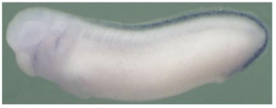 Larger Image ptgs2 (prostaglandin-endoperoxide synthase 2) gene expression in Xenopus laevis embryo, assayed via in situ hybridization, NF stage 26-32, lateral view, anterior left, dorsal up. This image is extracted from figure published in: Zhang Z et al. (2017) Copyright © 2017. Image reproduced with permission of the Publisher and the copyright holder. This is an Open Access article distributed under the terms of the Creative Commons Attribution License.