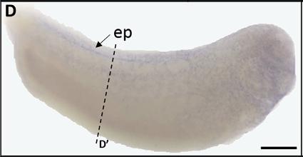 Larger Image trpv6 (transient receptor potential cation channel, subfamily V, member 6) gene expression in Xenopus laevis embryo, assayed via in situ hybridization, NF stage 30, lateral view, anterior right, dorsal up. This image is extracted from figure published in: Dong C et al. (2018) Copyright © 2018. Image reproduced with permission of the Publisher, Elsevier B. V.