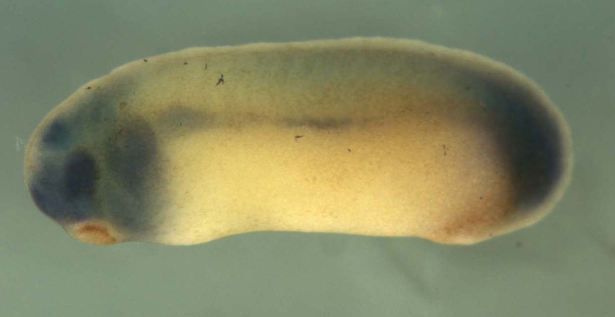 Larger Image etv1 (ets variant 1)gene expression in Xenopus laevis embryos, NF stage 25, as assayed by in situ hybridization, lateral view, anterior left, dorsal up. Copyright © XDB3