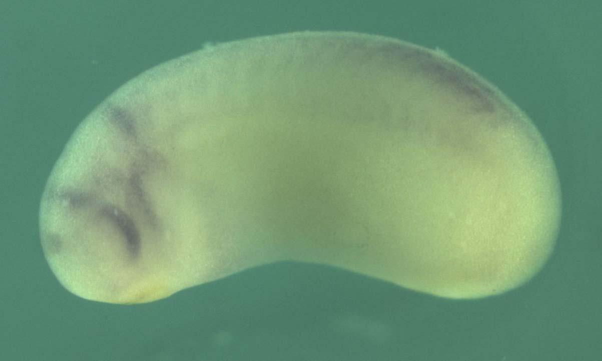 Larger Image flrt3 (fibronectin leucine rich transmembrane protein 3 ) gene expression in Xenopus laevis embryo, assayed via in situ hybridization, NF stage 23, lateral view, anterior left, dorsal up. Copyright © XDB3