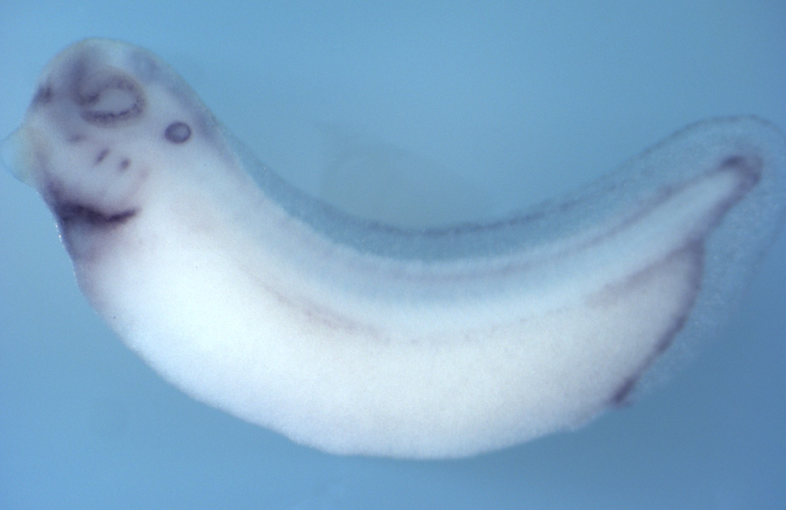 Larger Image bmp7.2 ( bone morphogenetic protein 7, gene 2 ) gene expression in Xenopus tropicalis embryos, NF stage 32, as assayed by in situ hybridization. Lateral view: anterior left, dorsal up. Copyright © Zorn Lab