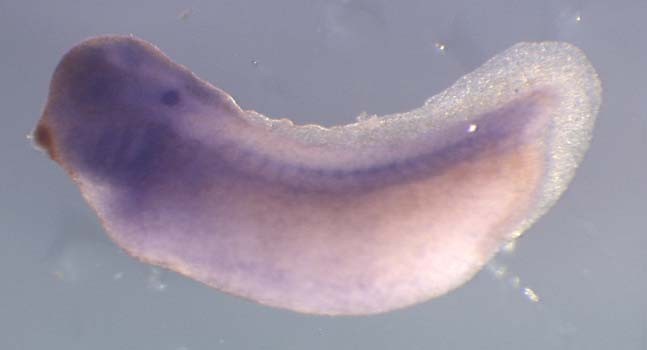 Larger Image tfdp2 (transcription factor Dp-2 (E2F dimerization partner 2)) gene expression in Xenopus tropicalis embryos, NF stage 28, as assayed by in situ hybridization. Lateral view: anterior left, dorsal up. Copyright © Papalopulu Lab