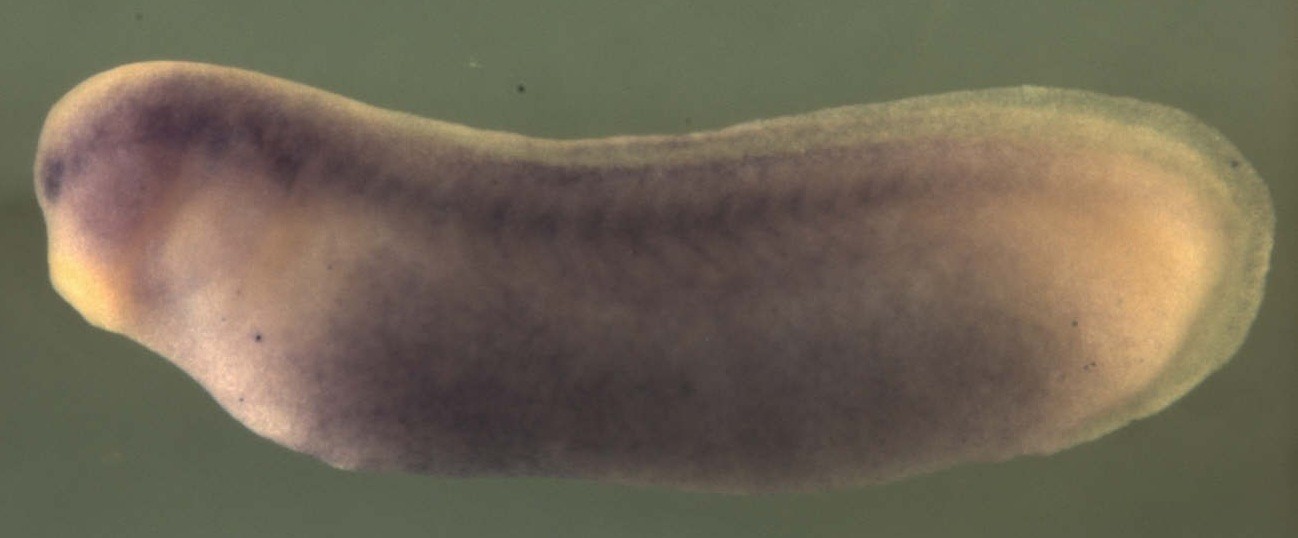 Larger Image fadd < Fas (TNFRSF6)-associated via death domain> gene expression in Xenopus laevis, NF stage 29&30 embryo, in situ hybridization, lateral view, anterior left. Image copyrighted by Pollet, Nicolas Copyright © XDB3