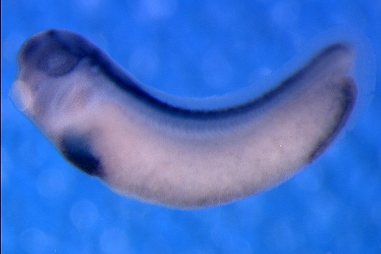 atp1b3 (ATPase Na+/K+ transporting subunit beta 3) gene expression in Xenopus laevis embryo, assayed via in situ hybridization, NF stage 29 & 30, lateral view, anterior left, dorsal up.