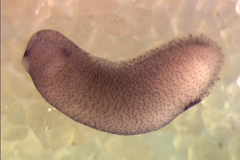 Larger Image odad2 (outer dynein arm docking complex subunit 2) gene expression in Xenopus laevis embryo via in situ hybridization, NF stage 29 & 30, lateral view, anterior left. Copyright © CNRS UMR 8080, Nicolas Pollet Image published in: AXELDB Database, AxelDB (Image Pages)