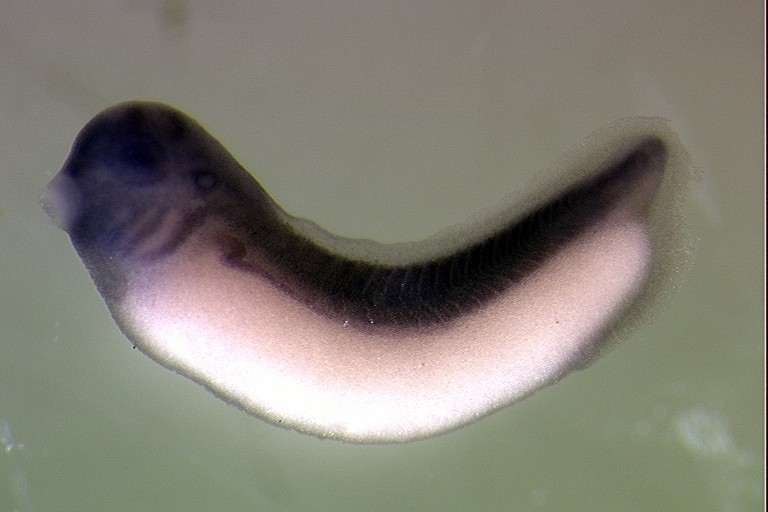 cox5a gene expression in Xenopus laevis, NF stage 29&30 embryo, in situ hybridization, lateral view, anterior left.