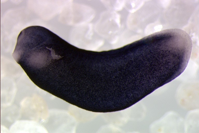 ldhb gene expression in Xenopus laevis embryo via in situ hybridization, NF stage 28, lateral view, anterior left.