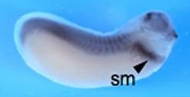Larger Image sema3a (semaphorin 3A) gene expression in Xenopus laevis embryos, NF stage 28 - 32, as assayed by in situ hybridization, lateral view, anterior right, dorsal up. This image is extracted from figure published in: Koestner U et al. (2008), Image published in: Koestner U et al. (2008) Copyright © 2008. Image reproduced with permission of the Publisher, John Wiley & Sons.