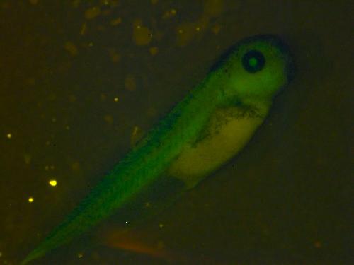 GFP expression in haematopoietic precursors in transgenic tadpole of Xla.Tg(Mmu.tal1:GFP) line.