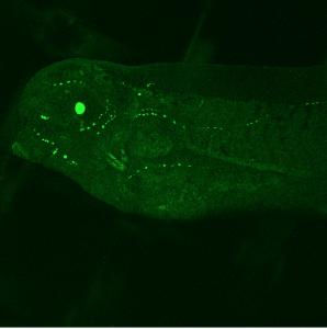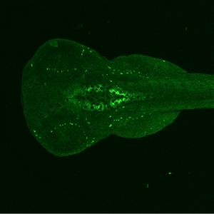 Phenotype Description: Green fluorescence in the neural tissues (neurectoderm, neurons, neural tube, spinal cord, brain, lateral line system) and the eye.