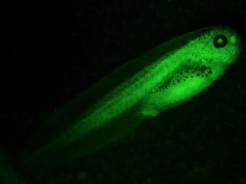 Ubiquitous expression of Venus, a variant of yellow fluorescent protein (YFP) throughout embryo and tadpole stages, in most tissues. |
