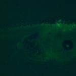 GFP expression in anterior neural tube/brain of Xla.Tg(Mmu.prrx1:GFP)Amaya tadpole.