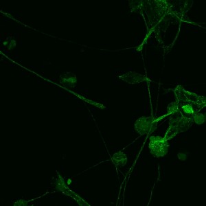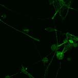 Ubiquitous expression of eGFP in microtubules plus ends. |