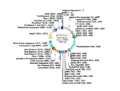 | Description: | The Xenopus laevis pax3 promoter (2916bp) driving Katushka in the pTransgenesis system. The marker is gamma crystallin [cryga] driving GFP expression in the lens. |