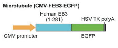 | Description: | A transgene constructed for microtubule labeling, cytomegalovirus (CMV)-hEB3-EGFP, consists of a CMV promoter, 1â281 a. a. of human (Hsa) EB3, and eGFP. |