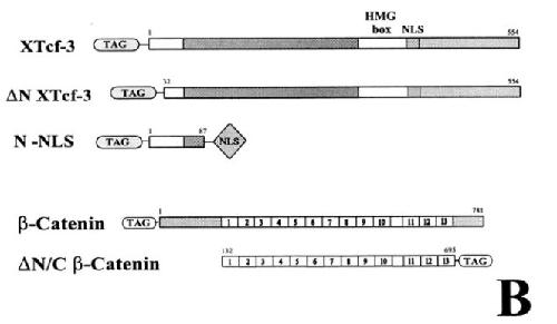 Description: This encodes a dominant negative form of tcf3. This was achieved by removing the N-terminal 31 amino acids of tcf-3 (deltaN) which does not interfere with DNA binding, but abrogates the beta-catenin interaction. Also known as deltaN-XTcf3